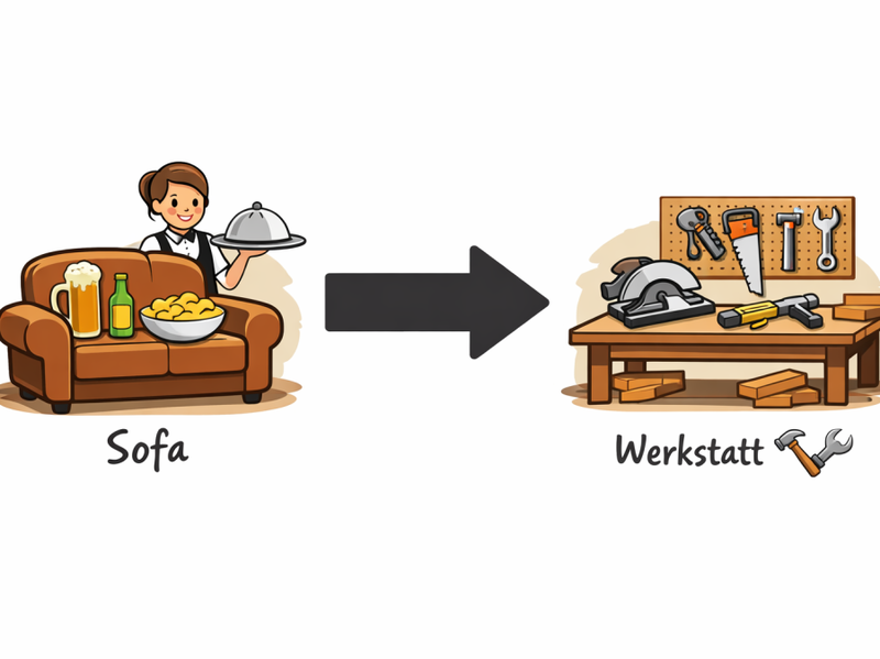 Handwerk lehrt Geduld, Zielstrebigkeit – und eine gesunde Portion Humor. Man zahlt Lehrgeld: verschnittenes Holz, falsche Maße, wackelige Ergebnisse … aber jede Panne ist eine neue Erfahrung. Und genau das macht den Spaß aus.