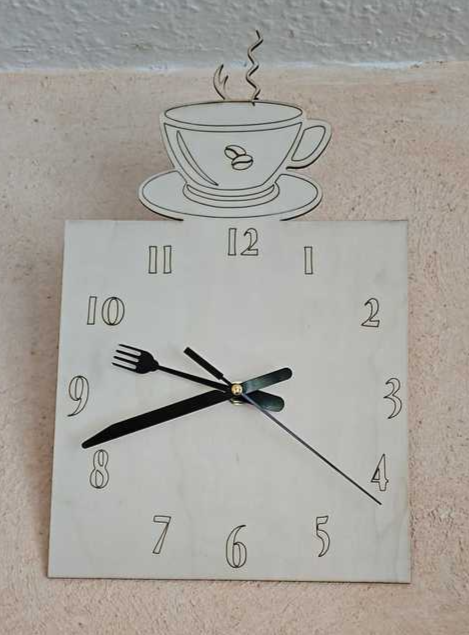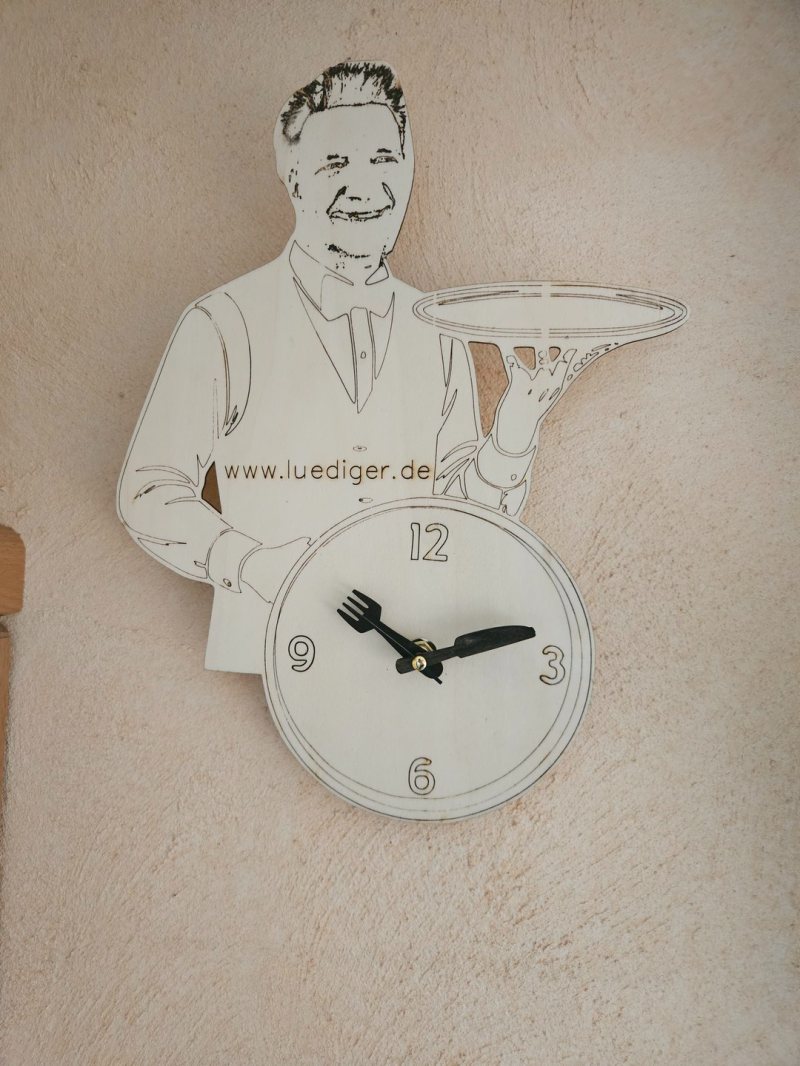 Auch diese Uhr hat ein Messer und Gabel als Zeiger.